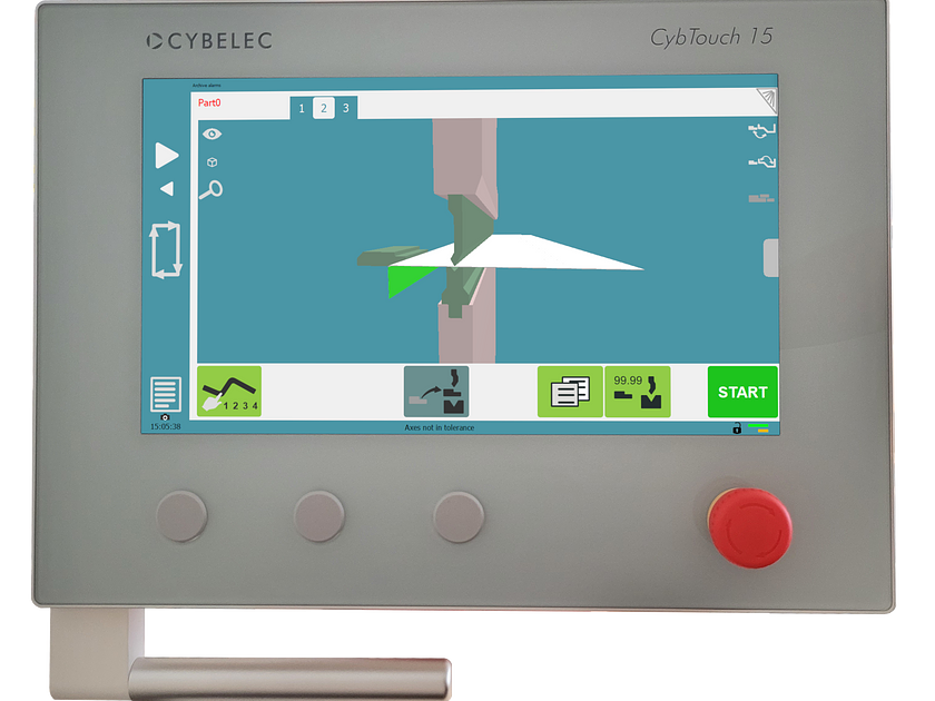 La CybTouch 15PS Win est une commande numérique 2D spécifiquement dédiée aux presses plieuses CNC de milieu de gamme. Elle se présente sous la forme d'un boîtier compact.